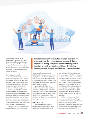 perubahan, tetapi juga menjadi bagian divisi, dan bereksperimen dengan ideide Jika bank tidak berinovasi hari