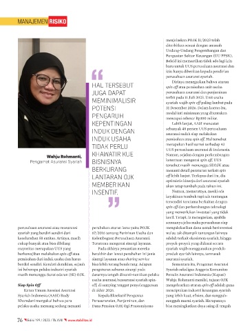 usaha asuransi/reasuransi syariah spin- Wahju Rohmanti menilai, tujuan OJK