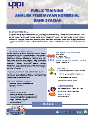 pendalaman mengenai pembiayaan komersial yang baik Pukul: 09.00 - 16.00 WIB