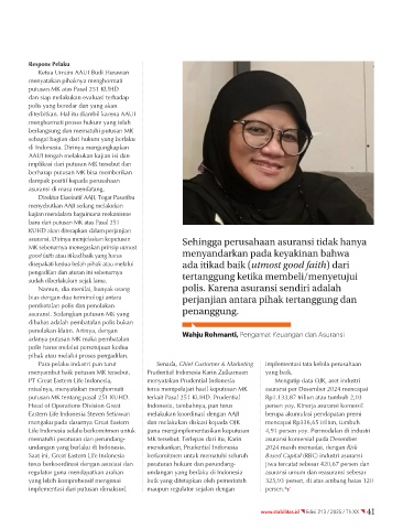 penolakan klaim. Artinya, dengan Wahju Rohmanti, Pengamat Keuangan dan Asuransi