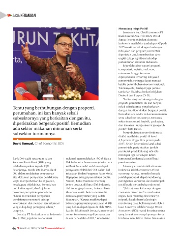 David Sumual, Chief Economist BCA 2025. Selain keberadaan katalis dari