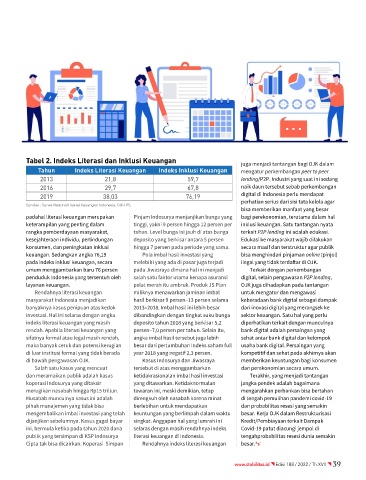 Tabel 2. Indeks Literasi dan Inklusi Keuangan juga menjadi tantangan bagi OJK dalam