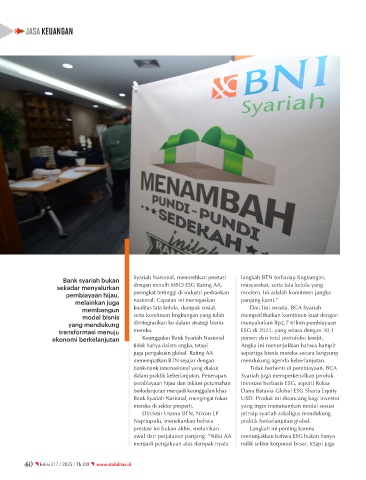 ekonomi berkelanjutan Keunggulan Bank Syariah Nasional persen dari total portofolio kredit.