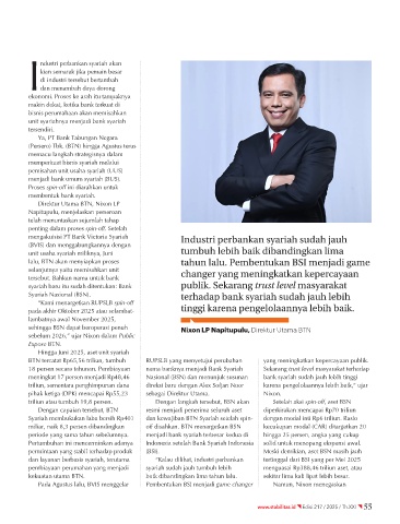 dan layanan berbasis syariah, terutama “Kalau dilihat, industri perbankan tertinggal dari BSI yang per Mei 2025