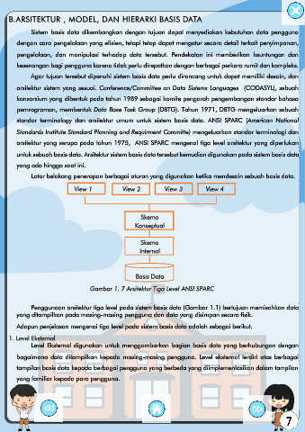 Penggunaan arsitektur tiga level pada sistem basis data (Gambar 1.1) bertujuan memisahkan data