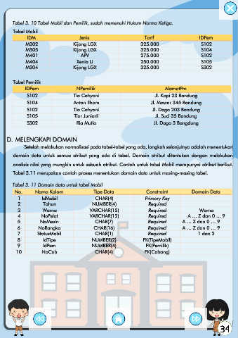 Tabel 3. 10 Tabel Mobil dan Pemilik, sudah memenuhi Hukum Norma Ketiga.