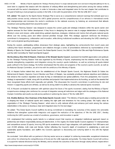 and a driver for enhancing the competitiveness of Dubai and the UAE regionally and globally. The Dubai Sports Council will continue