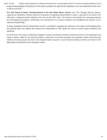 H.E. Aref Hamad Al Awani, Secretary-General of the Abu Dhabi Sports Council, said: “The ‘Strategic Planning Session’