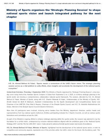 sports sector and develop a comprehensive, collaborative national sports framework. The session, attended by H.E. Dr. Ahmad