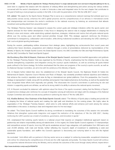 H.E. added: “We aspire for the Sports Sector Strategic Plan to serve as a comprehensive national roadmap that embeds sport as a