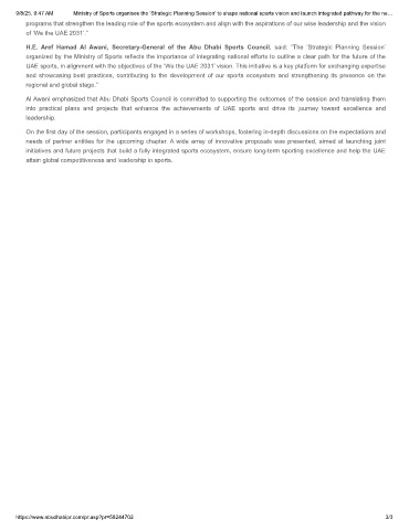H.E. Aref Hamad Al Awani, Secretary-General of the Abu Dhabi Sports Council, said: “The ‘Strategic Planning Session’