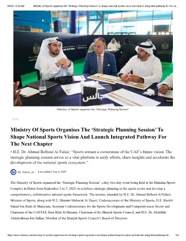 comprehensive, collaborative national sports framework. The session, attended by H.E. Dr. Ahmad Belhoul Al Falasi,