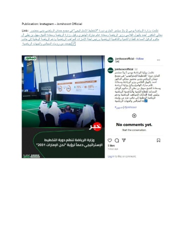 Link: روضحب يبدب يضايرلا نادمح عمجم يف "يجيتارتسلإا طيطختلا" ةرود يراجلا ربمتبس 3و 2 يموي ةضايرلا ةرازو تمظن