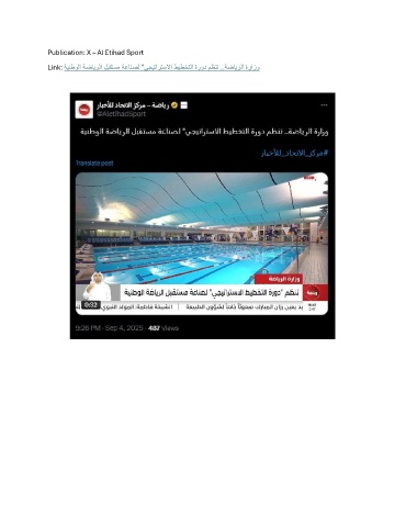Publication: X – Al Etihad Sport Link: ةينطولا ةضايرلا لبقتسم ةعانصل "يجيتارتسلاا طيطختلا ةرود مظنت ..ةضايرلا ةرازو