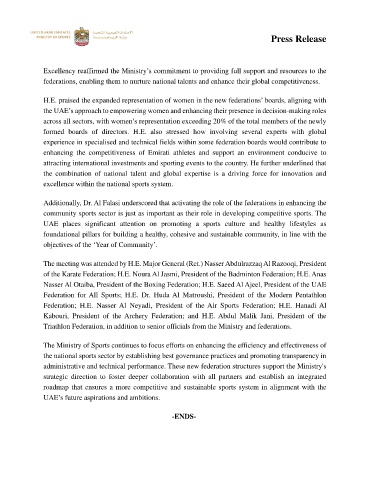 Additionally, Dr. Al Falasi underscored that activating the role of the federations in enhancing the