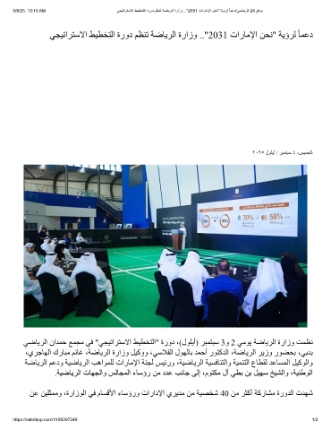 9/8/25, 10:19 AM ﻲﺟﯾﺗارﺗﺳﻻا طﯾطﺧﺗﻟا ةرود مظﻧﺗ ﺔﺿﺎﯾرﻟا ةرازو .."2031 تارﺎﻣﻹا نﺣﻧ" ﺔﯾؤرﻟ ً ﺎﻣﻋد/ﻲﺿﺎﯾرﻟا 24 ﻊﻗوﻣ