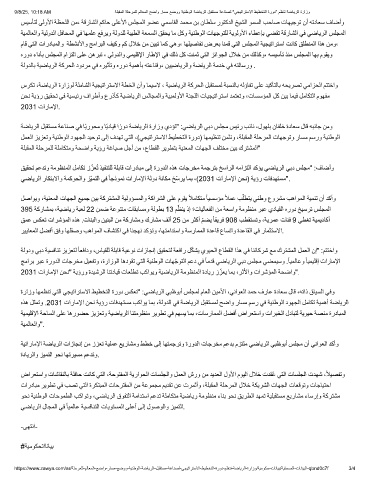 هذھ لﺛﻣﺗو .2031 تارﺎﻣﻹا نﺣﻧ ﺔﯾؤر تﺎﻓدﮭﺗﺳﻣ بﻛاوﯾ ﺎﻣﺑ ،ﺔﻟودﻟا ﻲﻓ ﺔﺿﺎﯾرﻟا لﺑﻘﺗﺳﻣﻟ ﺢﺿاو رﺎﺳﻣ مﺳر ﻲﻓ ﺔﯾﻧطوﻟا دوﮭﺟﻟا لﻣﺎﻛﺗ ﺔﯾﻣھأ ﺔﺿﺎﯾرﻟا