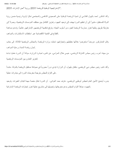 9/8/25, 10:18 AM 24 ﻊﻗوﻣ - ﻲﺟﯾﺗارﺗﺳﻻا طﯾطﺧﺗﻟا ةرود مظﻧﺗ ﺔﺿﺎﯾرﻟا ةرازو .."2031 تارﺎﻣﻹا نﺣﻧ" ﺔﯾؤرﻟ ً ﺎﻣﻋد
