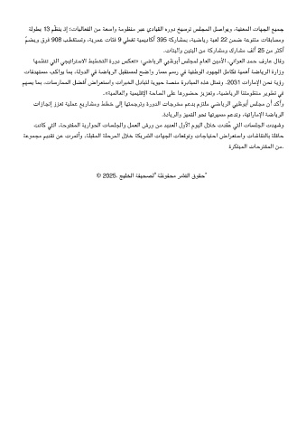 ﻢﻀﻳو قﺮﻓ 908 ﺐﻄﻘﺘﺴﺗو ،ﺔﻳﺮﻤﻋ تﺎﺌﻓ 9 ﻄﻐﺗ ﺔﻴﻤﻳدﺎﻛأ 395 ﺔﻛرﺎﺸﻤﺑ ،ﺔﻴﺿﺎﻳر ﺔﺒﻌﻟ 22 ﻦﻤﺿ ﺔﻋﻮﻨﺘﻣ تﺎﻘﺑﺎﺴﻣو