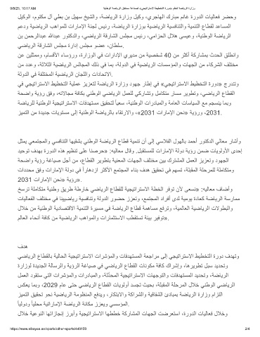 زﯾﻣﺗﻟا نﻣ ةدﯾدﺟ تﺎﯾوﺗﺳﻣ ﻰﻟإ ﺔﯾﻧطوﻟا ﺔﺿﺎﯾرﻟﺎﺑ ءﺎﻘﺗرﻻاو ،«2031 تارﺎﻣﻹا نﺣﻧ» ﺔﯾؤرو ،2031.