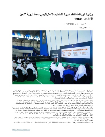 يضايرلا نادمح عمجم يف "يجيتارتسلإا طيطختلا" ةرود ،يراجلا ربمتبس 2 و 3 يموي ةضايرلا ةرازو تمظن /ماو /ربمتبس 4 يف يبد