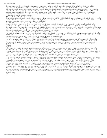 ﺔﻛ و ،ﺔيﻨﻃﻮﻟا ﺔﺿﺎيرﻟا ﻢﻋدو ﺔيﺿﺎيرﻟا ﺐﻫاﻮﻤﻟا ﺔيﺎﻋﺮﻟ تارﺎﻣﻹا ﺔﻨﺠﻟ ﻊﻣ نوﺎﻌﺘﻟﺎبو ،ﺔﺿﺎيرﻟا ةرازو ﺔيﺎﻋﺮﺑ ،«ﻞيﻠﺤﺘﻟاو