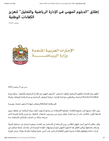 ﺔﻛرشو ،ﺔﻴﻨﻃﻮﻟا ﺔﺿﺎﻳﺮﻟا ﻢﻋدو ﺔﻴﺿﺎﻳﺮﻟا ﺐﻫاﻮﻤﻟا ﺔﻳﺎﻋﺮﻟ تارﺎﻣإلا ﺔﻨﺠﻟ ﻊﻣ نوﺎﻌﺘﻟﺎﺑو ،ﺔﺿﺎﻳﺮﻟا Precision Football.