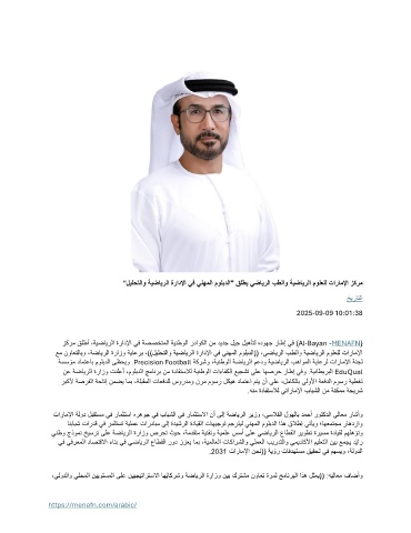 زكرم قلطٔا ،ةيضايرلا ةرادٕلاا يف ةصصختملا ةينطولا رداوكلا نم ديدج ليج ليهٔاتل هدوهج راطٕا يف ) Al - Bayan - MENAFN (