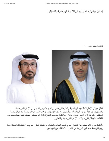 ﺔﺿﺎﯾﺮﻟا ﻢﻋدو ﺔﯿﺿﺎﯾﺮﻟا ﺐھاﻮﻤﻟا ﺔﯾﺎﻋﺮﻟ تارﺎﻣﻹا ﺔﻨﺠﻟ ﻊﻣ نوﺎﻌﺘﻟﺎﺑو ،ﺔﺿﺎﯾﺮﻟا ةرازو ﺔﯾﺎﻋﺮﺑ ،«ﻞﯿﻠﺤﺘﻟاو