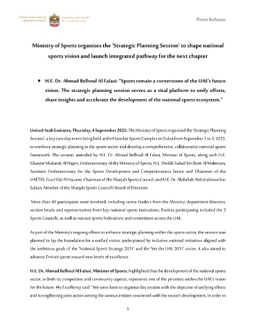 United Arab Emirates, Thursday, 4 September 2025: The Ministry of Sports organised the ‘Strategic Planning