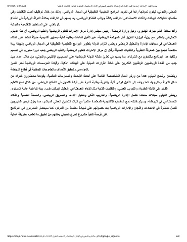 لﯾﺟ دادﻋإ لﻼﺧ نﻣ ،ﻲﻟودﻟاو ﻲﻣﯾﻠﻗﻹا نﯾدﯾﻌﺻﻟا ﻰﻠﻋ ﺔﯾﺿﺎﯾرﻟا ﺔﻟودﻟا ﺔﻧﺎﻛﻣ زﯾزﻌﺗ ﻲﻓ مﮭﺳﯾ ﺎﻣﺑ ،ءﺎﻛرﺷﻟا ﻊﻣ نوﺎﻌﺗﻟﺎﺑ ﺞﻣﺎﻧرﺑﻟا اذھ ذﯾﻔﻧﺗو