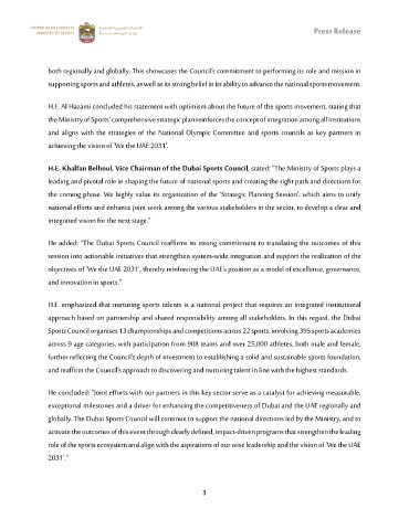 globally. The Dubai Sports Council will continue to support the national directions led by the Ministry, and to
