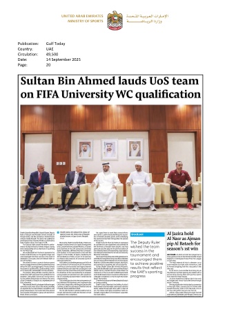 Publication: Gulf Today Country: UAE Circulation: 49,500 Date: 14 September 2025 Page: 20