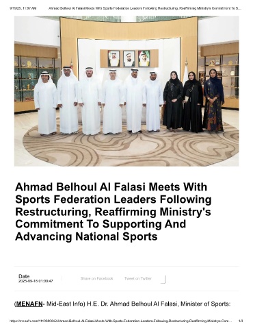 https://menafn.com/1110080842/Ahmad-Belhoul-Al-Falasi-Meets-With-Sports-Federation-Leaders-Following-Restructuring-Reaffirming-Ministrys-Com… 1/3