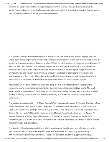 9/19/25, 11:07 AM Ahmad Belhoul Al Falasi meets with sports federation leaders following restructuring, reaffirming Ministry’s commitment to supporti…