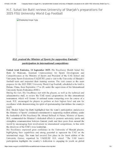 9/16/25, 9:41 AM Company News in Egypt: H.E. Suhail bin Butti reviews University of Sharjah’s preparations for 2025 FISU University World Cup Fo…