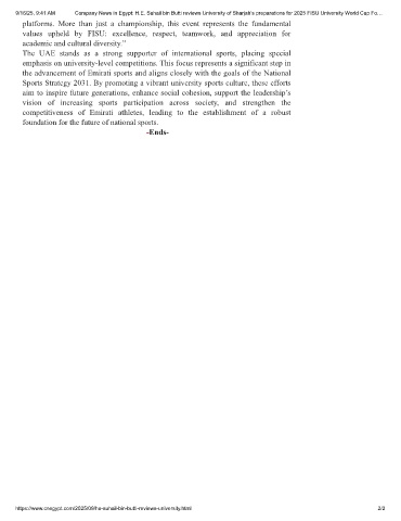 9/16/25, 9:41 AM Company News in Egypt: H.E. Suhail bin Butti reviews University of Sharjah’s preparations for 2025 FISU University World Cup Fo…