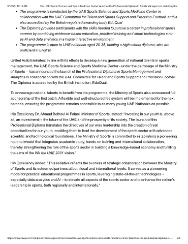 9/10/25, 10:13 AM The UAE Sports Science and Sports Medicine Center launches the Professional Diploma in Sports Management and Analytics