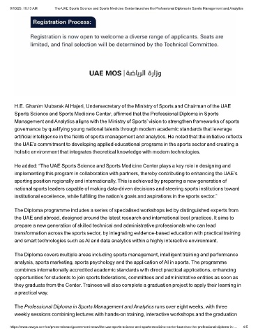 9/10/25, 10:13 AM The UAE Sports Science and Sports Medicine Center launches the Professional Diploma in Sports Management and Analytics