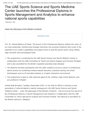 https://mid-east.info/the-uae-sports-science-and-sports-medicine-center-launches-the-professional-diploma-in-sports-management-and-analytics-to-en… 1/3
