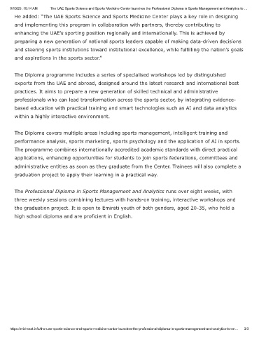 https://mid-east.info/the-uae-sports-science-and-sports-medicine-center-launches-the-professional-diploma-in-sports-management-and-analytics-to-en… 3/3