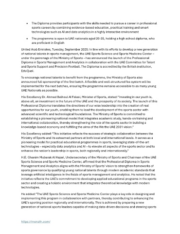 initiative reflects the UAE's commitment to developing applied educational programs in the sports