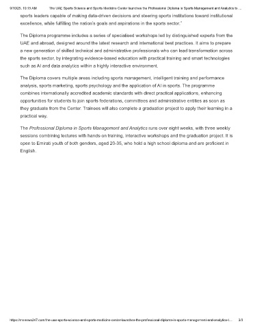 https://menews247.com/the-uae-sports-science-and-sports-medicine-center-launches-the-professional-diploma-in-sports-management-and-analytics-t… 3/3