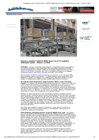 www.arabmedicare.com/News/savoye-solution-odatio-wm-goes-live-at-cj-logistics-fulfilment-center-phase-1-in-silz-07082025.htm 1/2