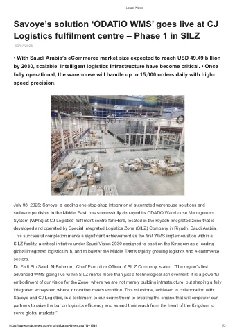 System (WMS) at CJ Logistics’ fulfilment centre for iHerb, located in the Riyadh Integrated zone that is