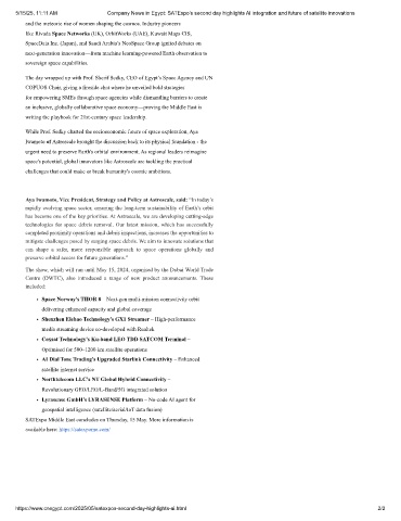 5/15/25, 11:11 AM Company News in Egypt: SATExpo’s second day highlights AI integration and future of satellite innovations