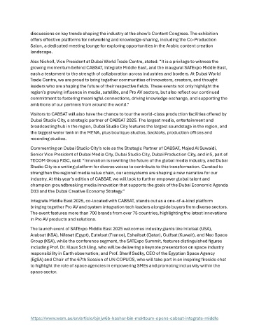 industry. At this year’s edition of CABSAT, we will look to further empower global talent and