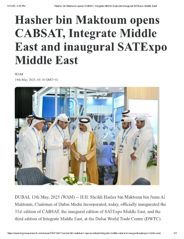 5/14/25, 3:39 PM Hasher bin Maktoum opens CABSAT, Integrate Middle East and inaugural SATExpo Middle East