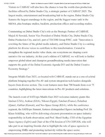 5/14/25, 3:39 PM Hasher bin Maktoum opens CABSAT, Integrate Middle East and inaugural SATExpo Middle East