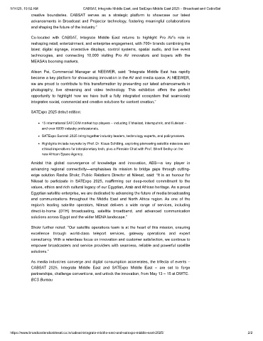 5/14/25, 10:52 AM CABSAT, Integrate Middle East, and SatExpo Middle East 2025 – Broadcast and CableSat